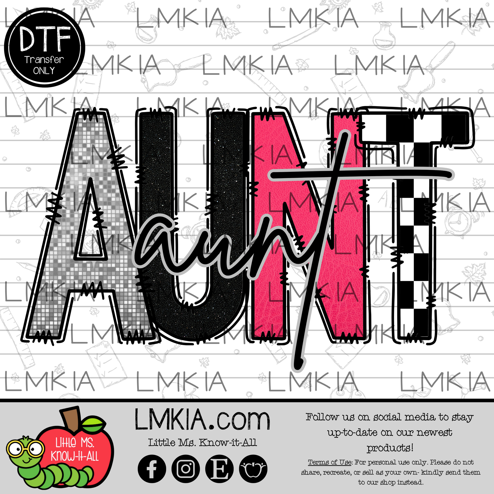 Pink Checkered Aunt DTF Transfer